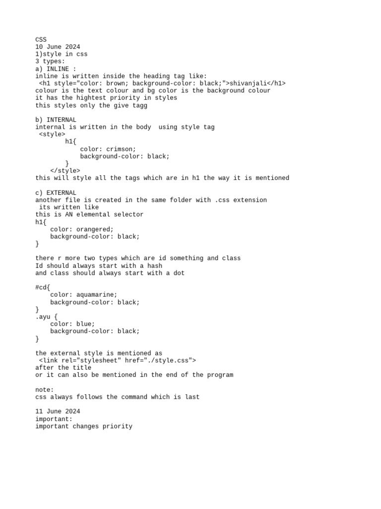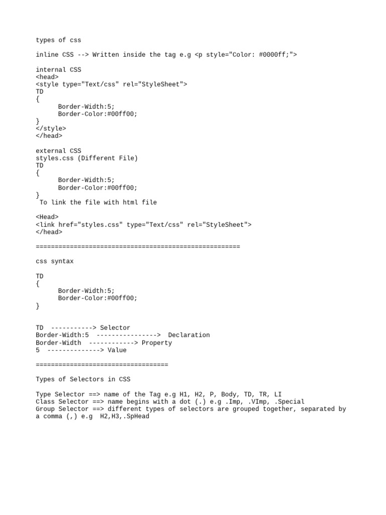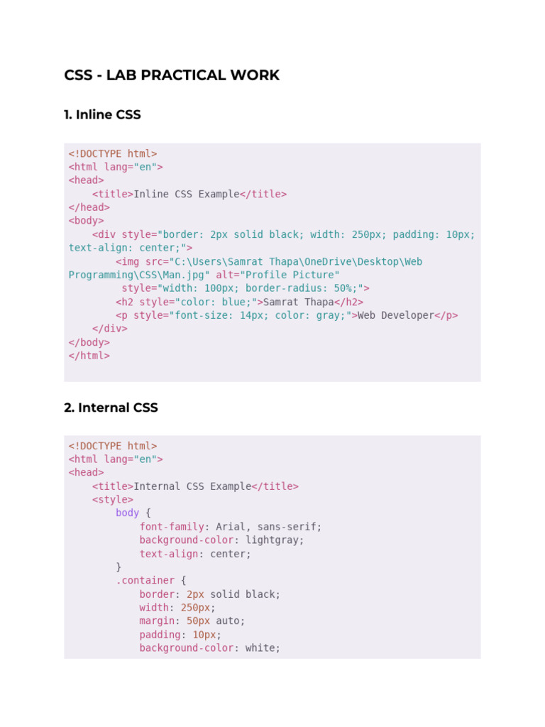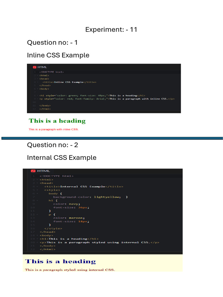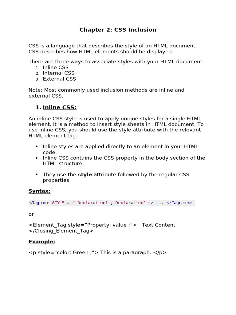 Inline, Internal and External CSS Styling and Their Priority | PDF ...