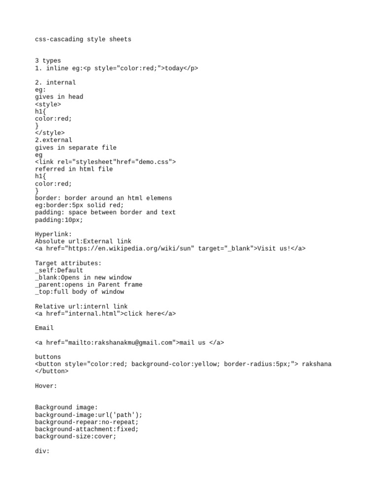 Notes On CSS | PDF | Html | Html Element