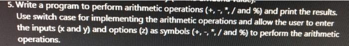 Solved 5. Write a program to perform arithmetic operations | Chegg.com
