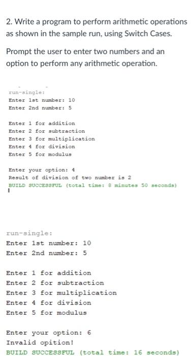 Solved 2. Write a program to perform arithmetic operations | Chegg.com