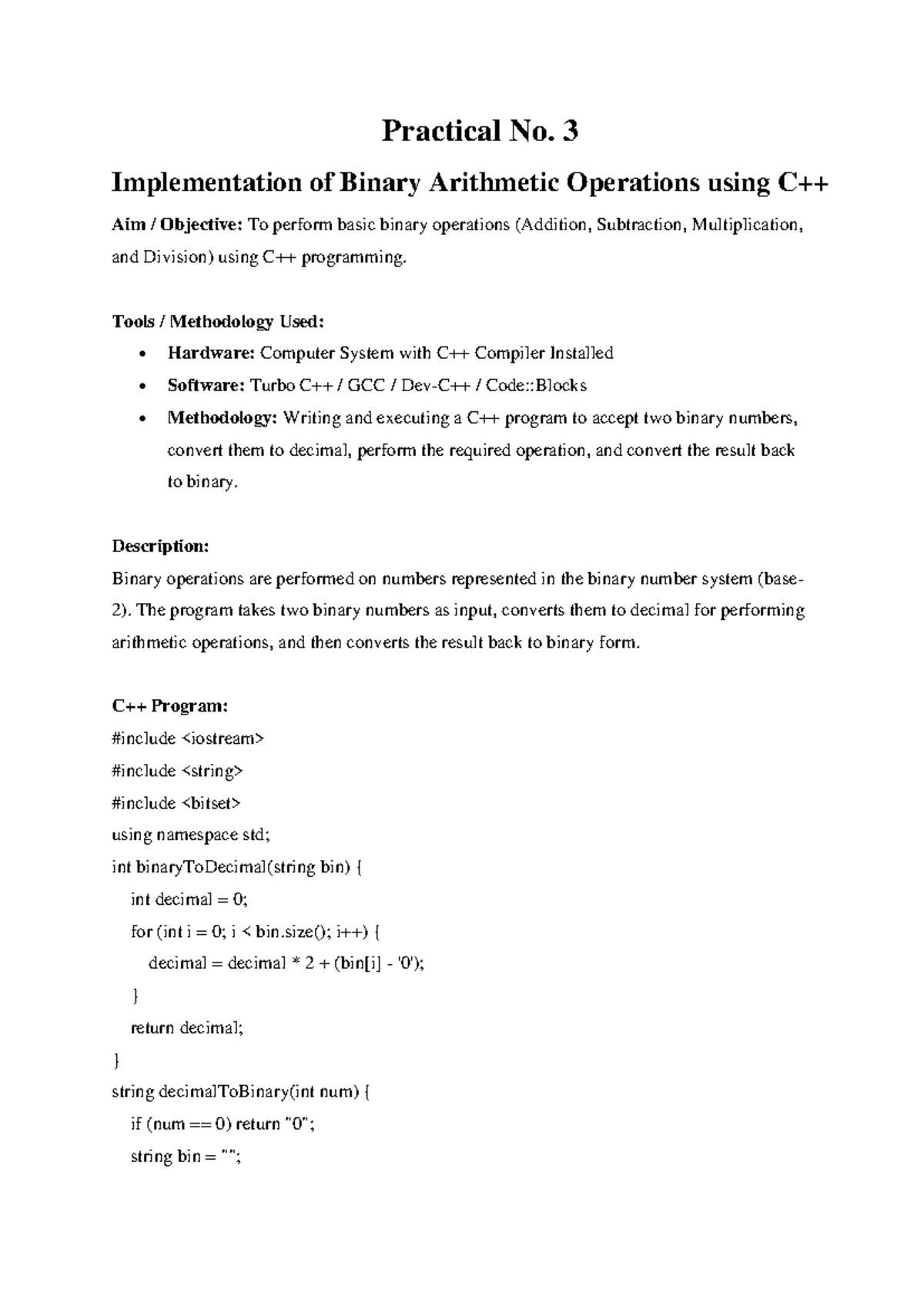 Practical No. 3 - Binary Arithmetic Operations in Computer Org & Arch ...