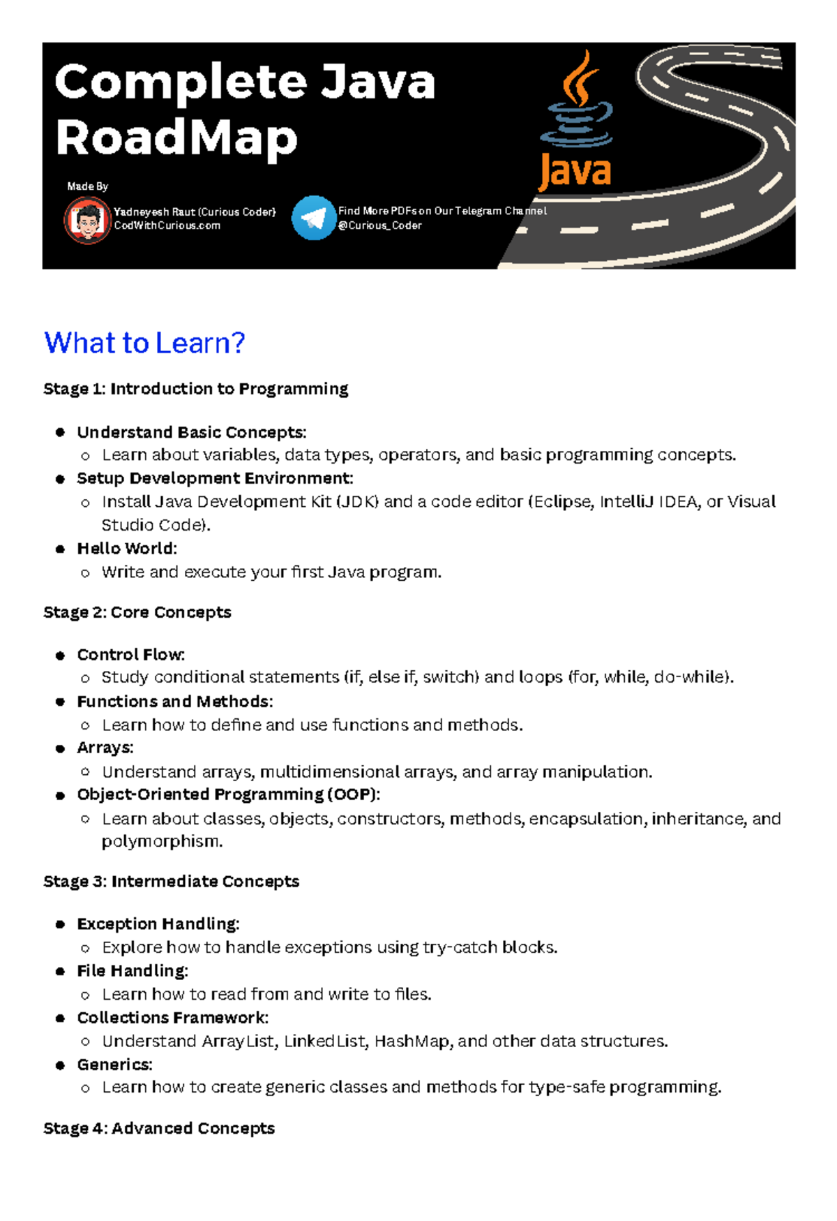 Java Learning Roadmap - Level 1 | PDF | Java (Programming Language ...