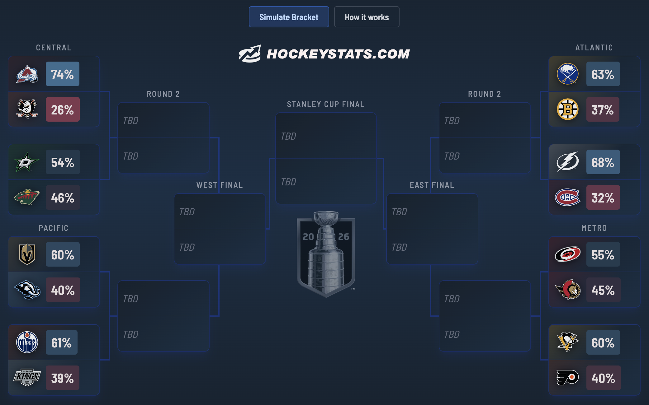 2026 NHL Playoff Bracket with Simulator & Series Predictions