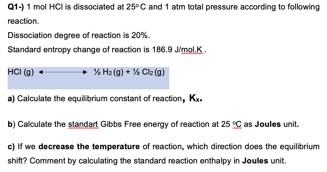 Q1-) 1 molHCl is dissociated at 25∘C and 1 atm total | Chegg.com
