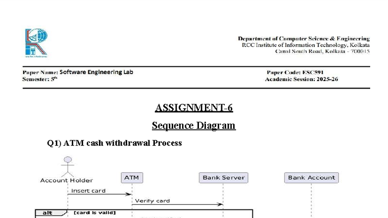 Se6,7 - test - Computer - ASSIGNMENT- Sequence Diagram Q1) ATM cash ...