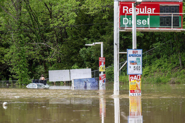 Floodwaters swamp area along Interstate 435 near Blue Summit after ...
