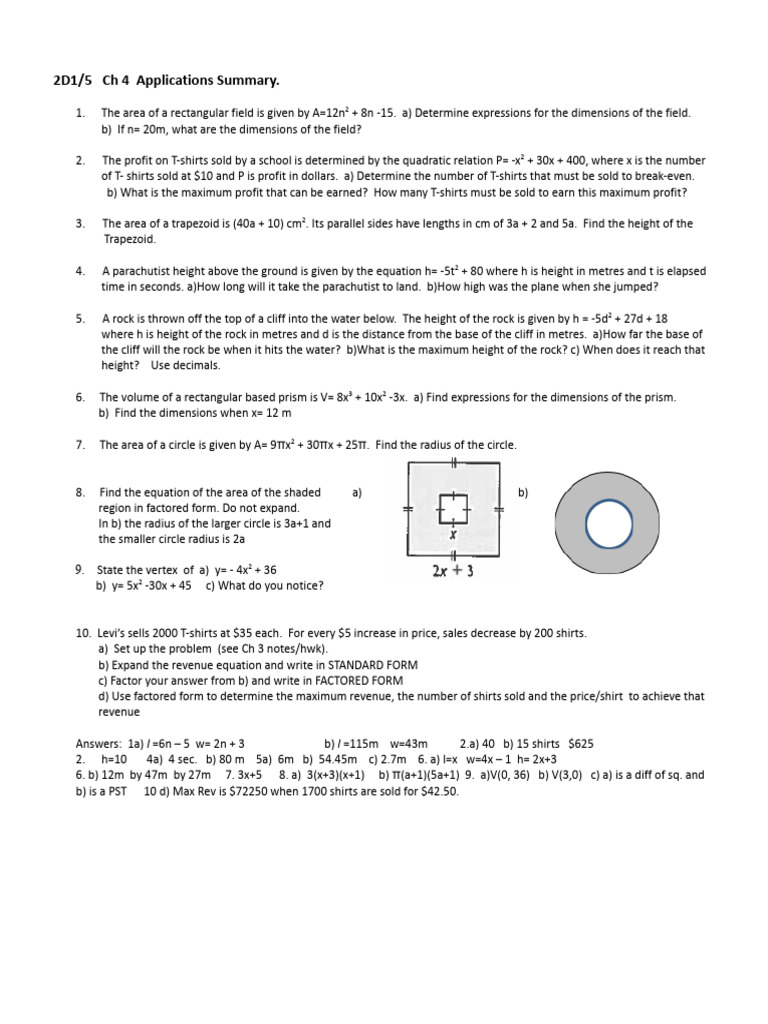 Quadratic Applications and Solutions | PDF | Area | Circle