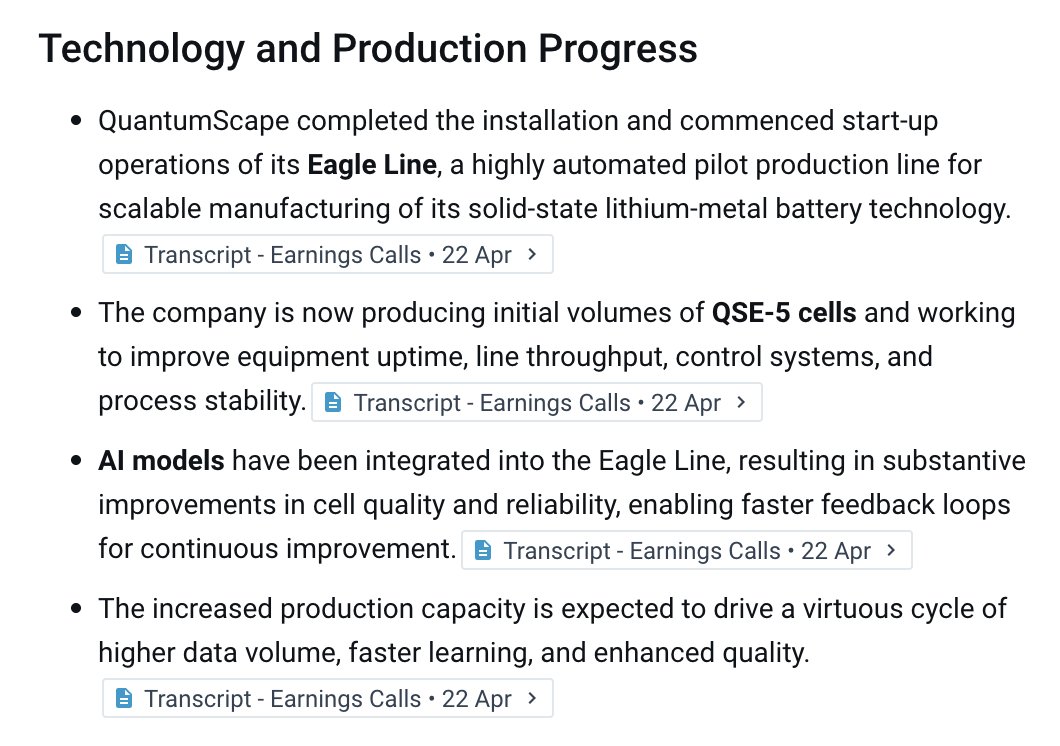 $QS reported progress on its Eagle Line pilot production facility ...