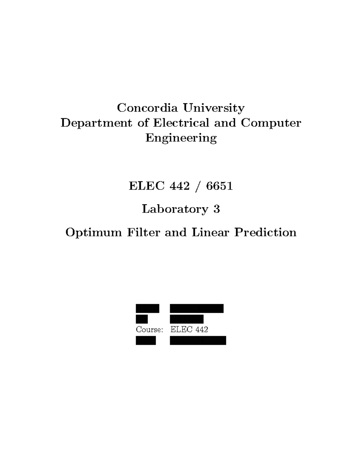 LAB 3: Optimum Filtering & Linear Prediction in ELEC 442 - Studocu