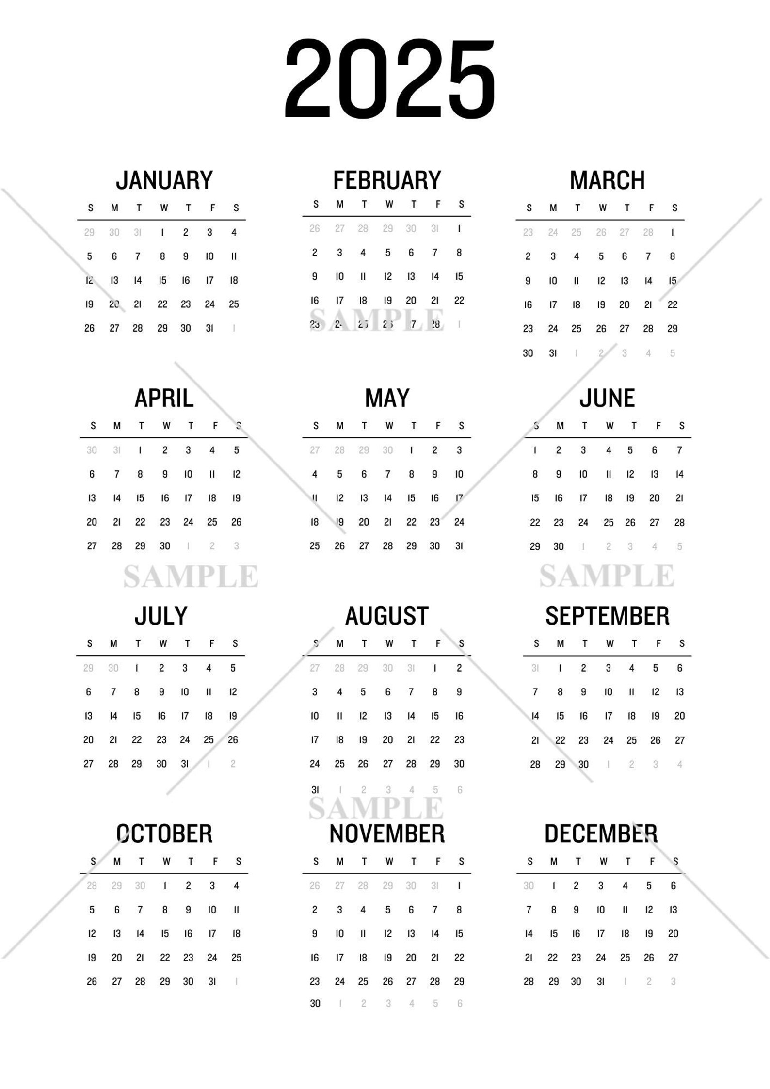 2025 Minimalist Calendar Vector, 2025 Simple Calendar, 2025 Calendar ...