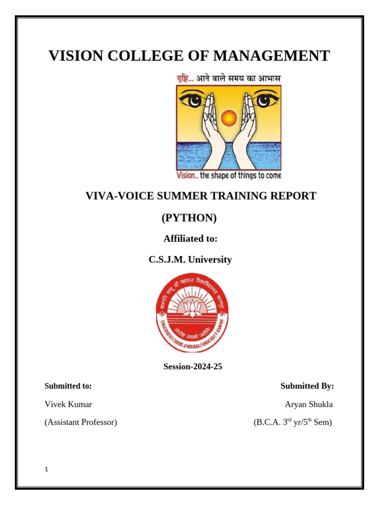 Summer-training-report-on-python - SUMMER INTERNSHIP REPORT Course Code ...