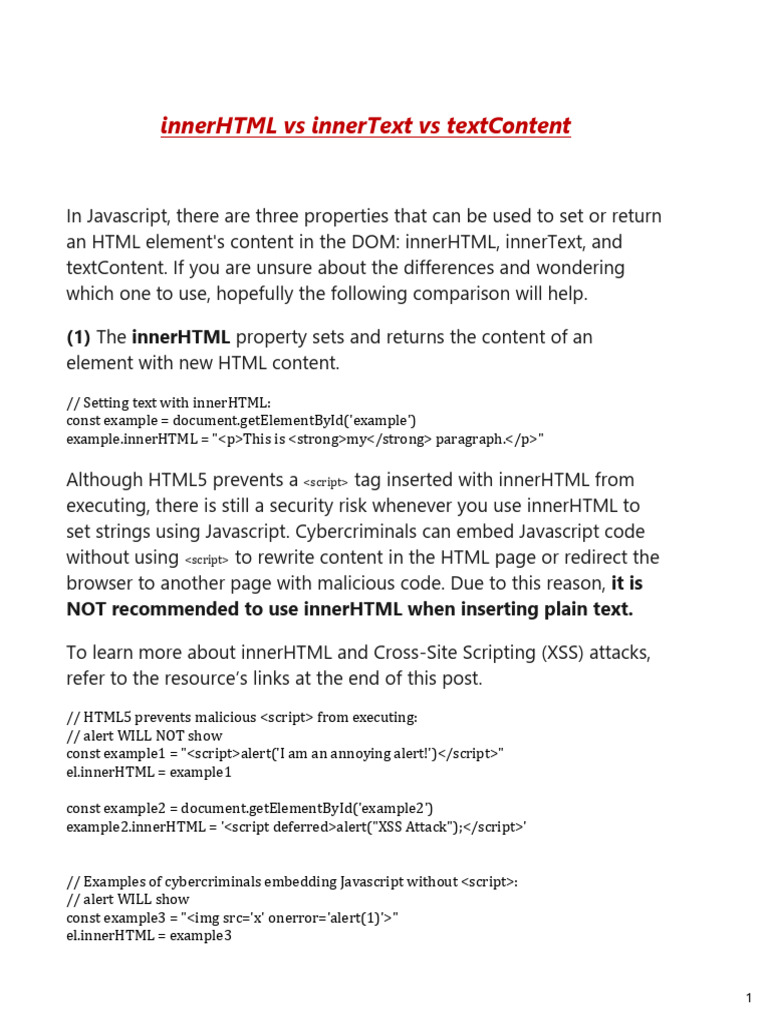 XSS: Using ‘innerText’ or ‘textContent vs ‘innerHTML’ | by Josue ...