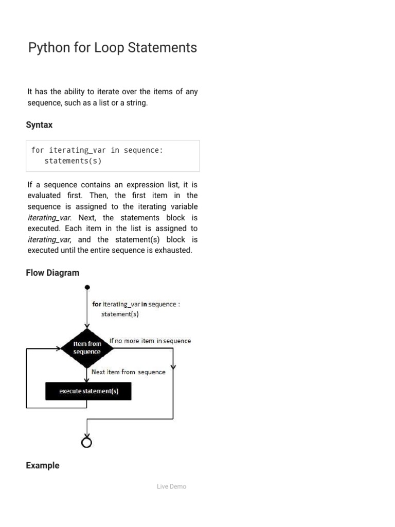 Based on this image's title: “Python For Loop Statements - Tutorialspoint | PDF | Control Flow ...”