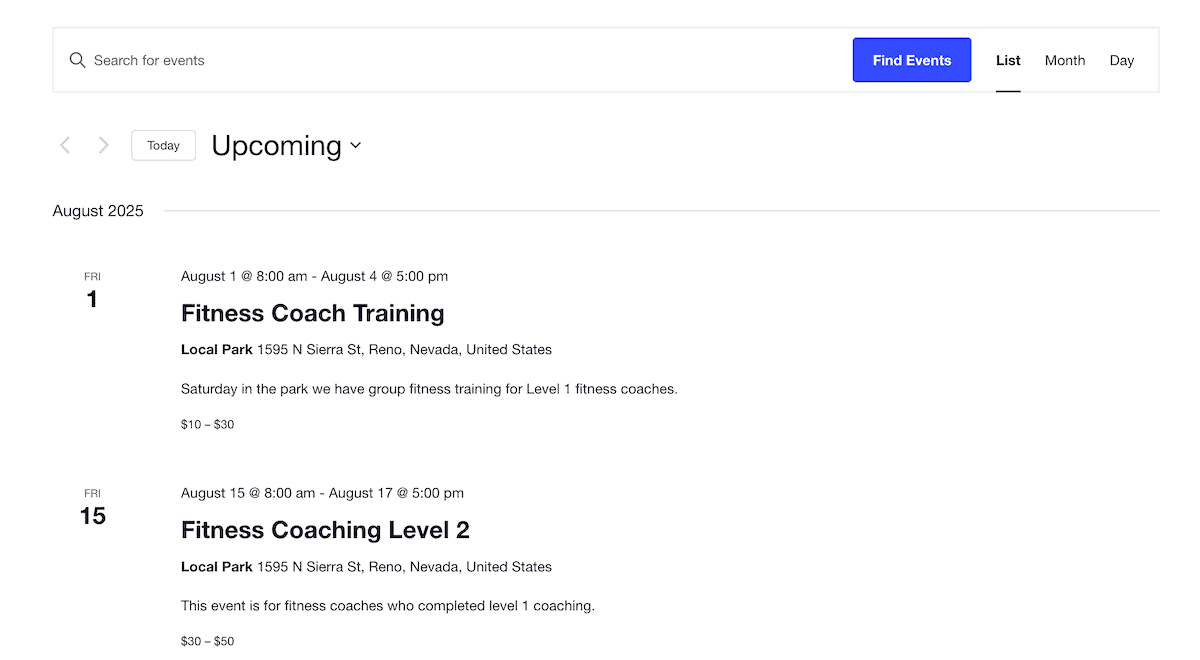 The Events Calendar Shortcode & Block Plugin — WordPress.com