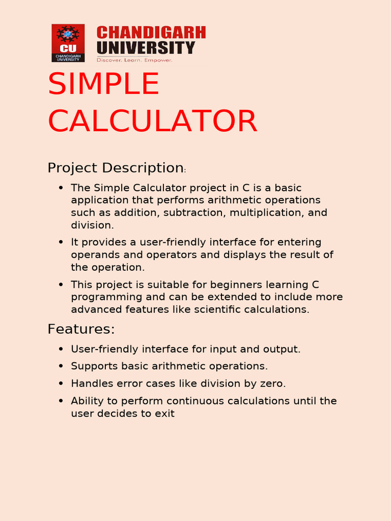 Simple Calculator Project | PDF
