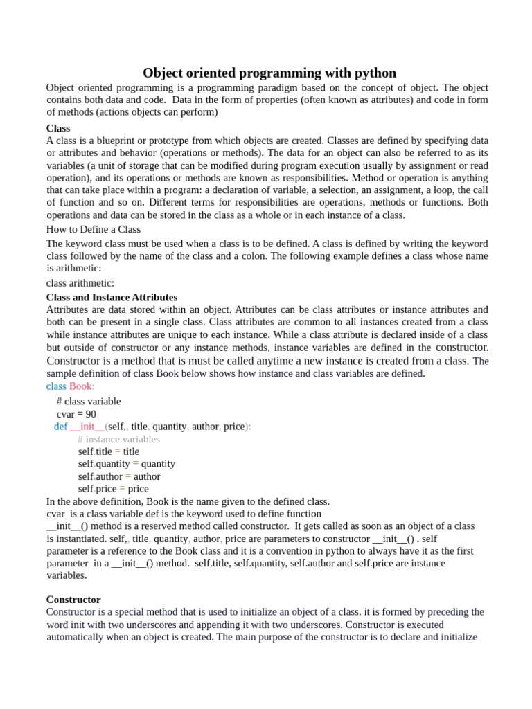 Python Object Oriented Programming (With Examples) | PDF | Method ...