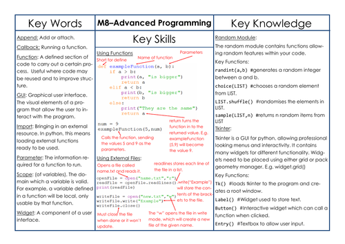 GCSE Computer Science Knowledge Organiser - Advanced Python Programming ...