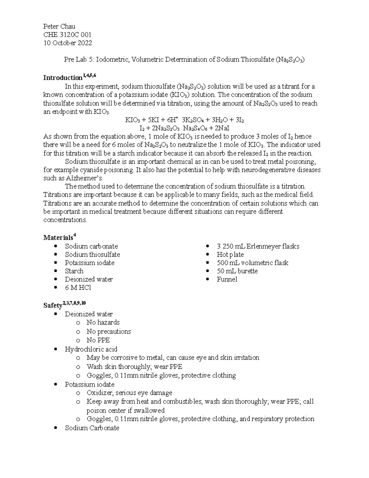 Pre Lab 5 - lab - Peter Chau CHE 3120C 001 10 October 2022 Pre Lab 5 ...