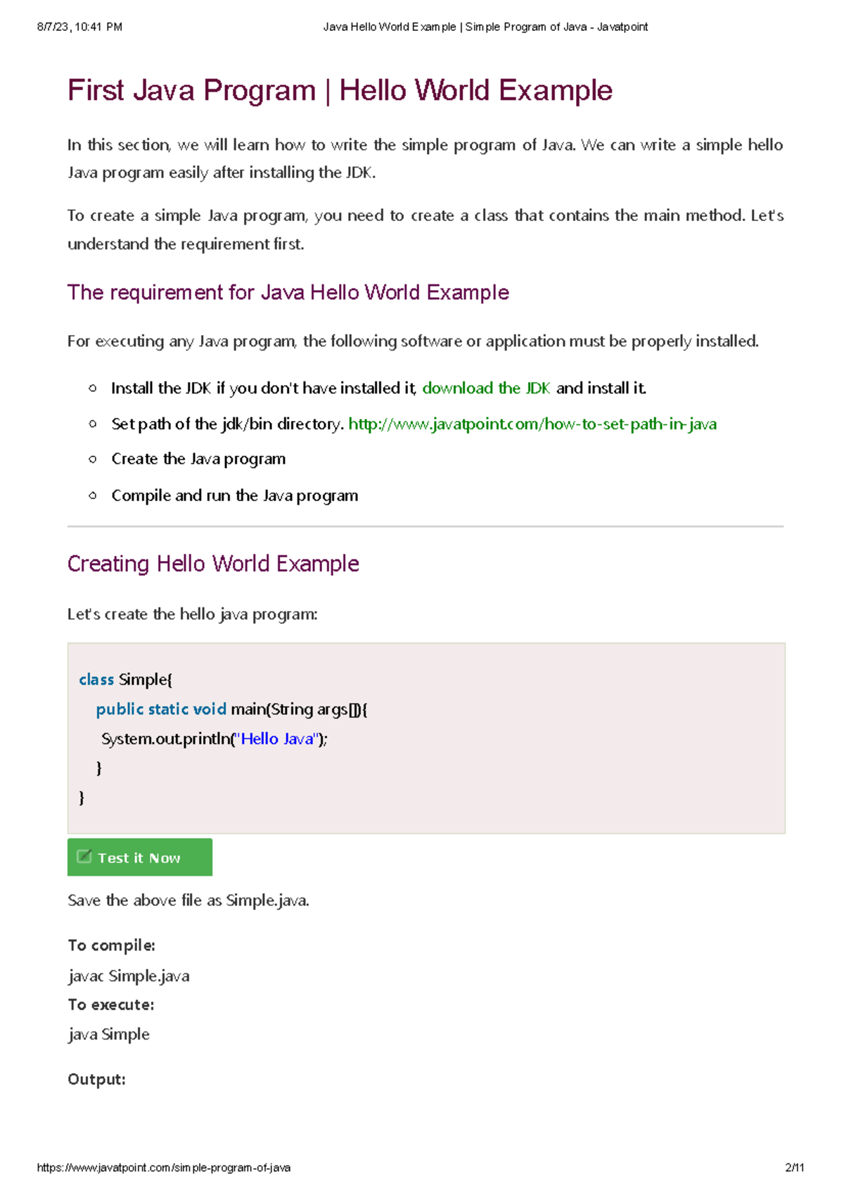 Creating Your First Java Program: Hello World!
