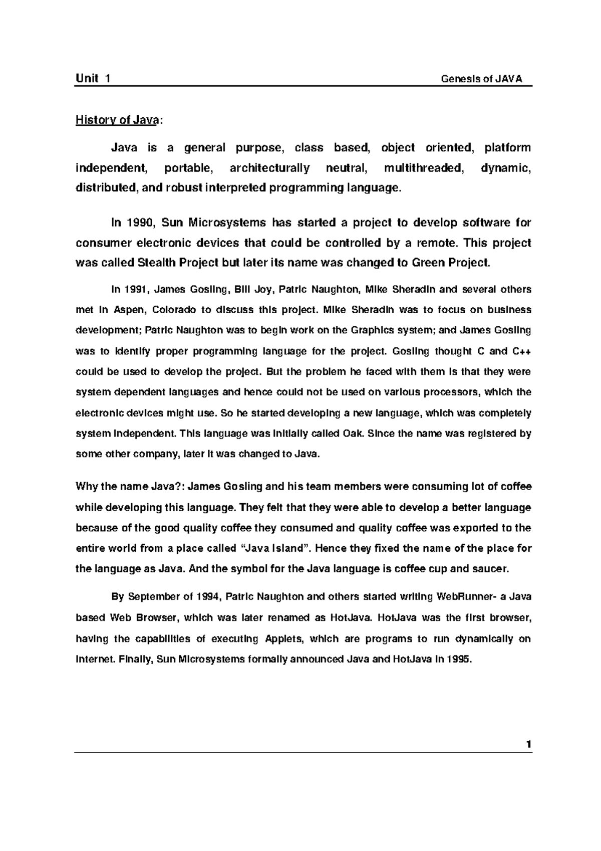 Java Unit 1Notes practical - The Genesis of Java / History of Java Java ...