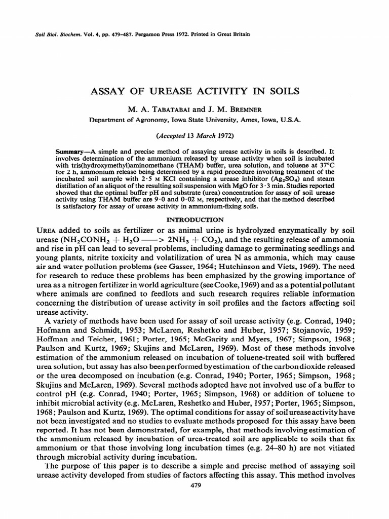 (PDF) Short-Term Assay of Soil Urease Activity Using Colorimetric ...