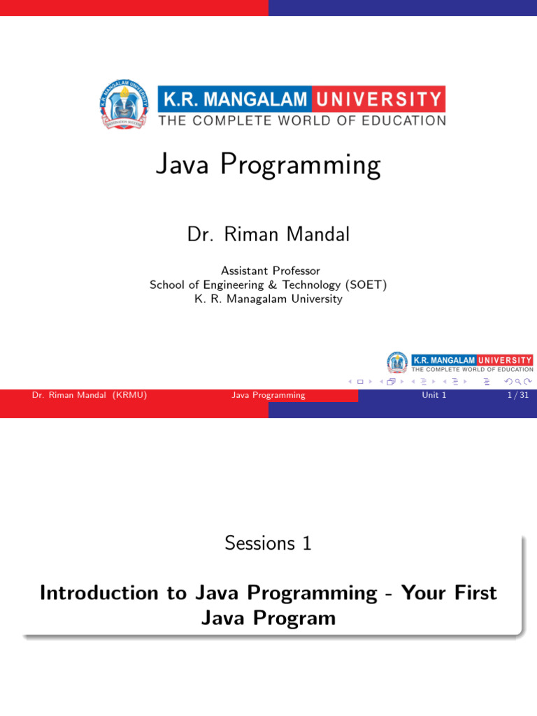 Fundamentals of JAVA Programming - 1 Java Fundamentals 1 Programming ...