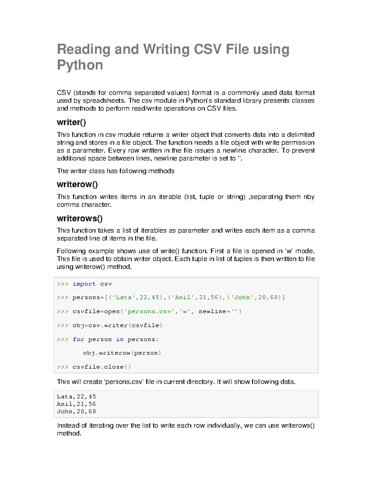 Python CSV notes - Reading and Writing CSV File using Python CSV ...