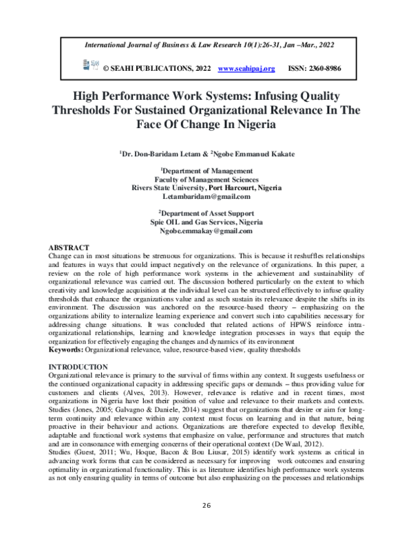 (PDF) High Performance Work Systems: Infusing quality thresholds for ...