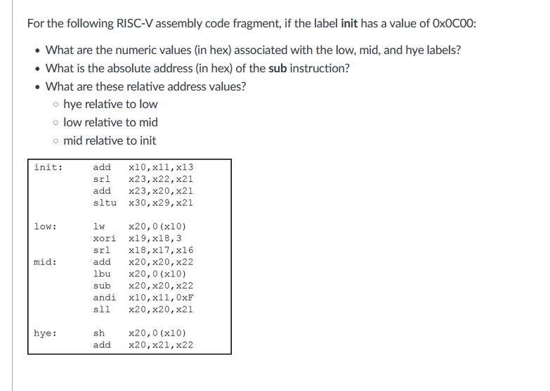 Solved For the following RISC-V assembly code fragments, | Chegg.com