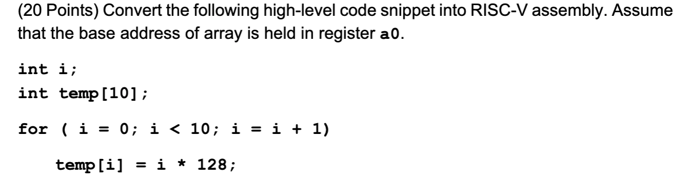 Solved Q1 20 Points Give RISC-V code for the following | Chegg.com