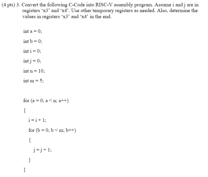 Solved (4 pts) 3. Convert the following C-Code into RISC-V | Chegg.com