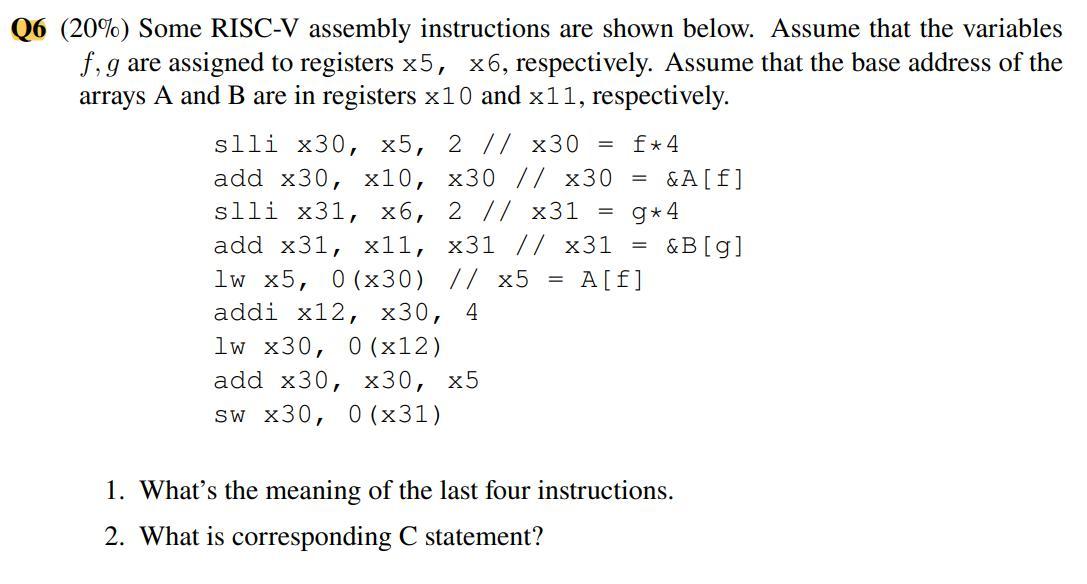 Solved = Q6 (20%) Some RISC-V assembly instructions are | Chegg.com