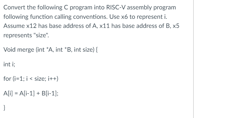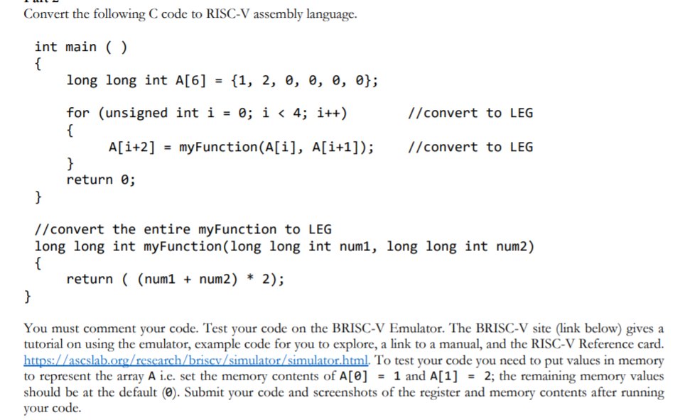 Solved Convert the following C program into RISC-V assembly | Chegg.com