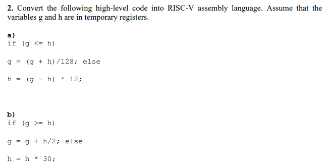 Solved 2. Convert the following high-level code into RISC-V | Chegg.com