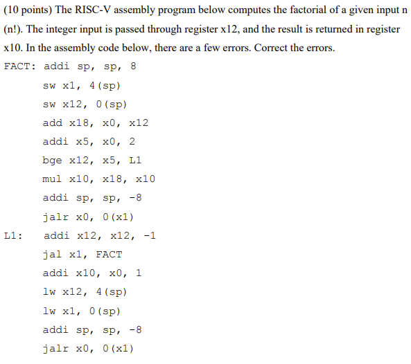 (10 points) The RISC-V assembly program below | Chegg.com