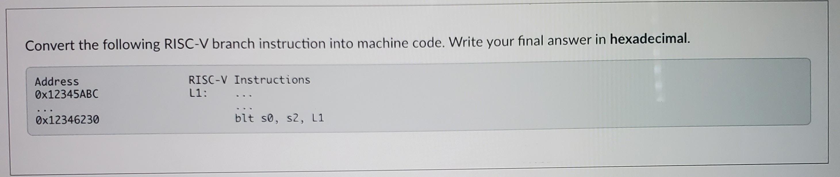 Solved Convert the following RISC-V branch instruction into | Chegg.com
