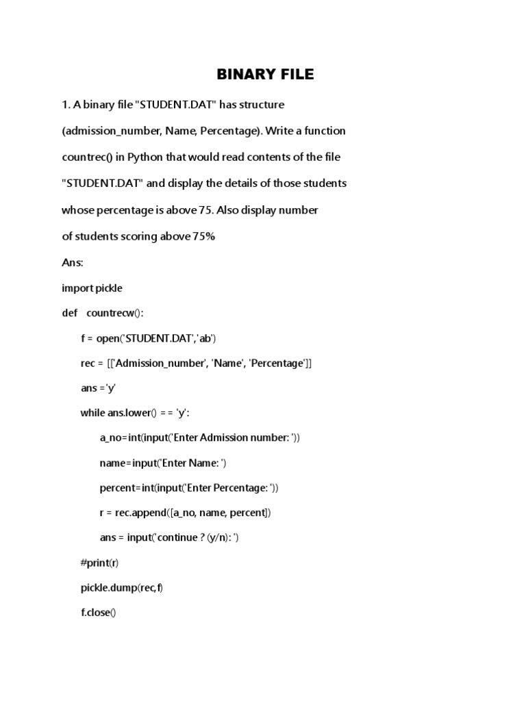 10 Important Questions of Binary File Handling in Python - CS-IP ...