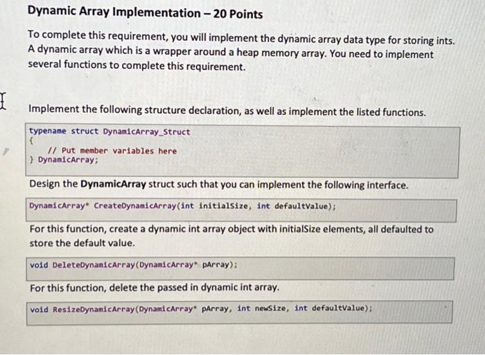 Solved Dynamic Array Implementation - 20 Points To complete | Chegg.com