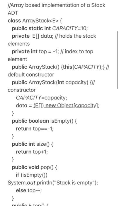 Solved \} //Array based implementation of a Stack ADT class | Chegg.com