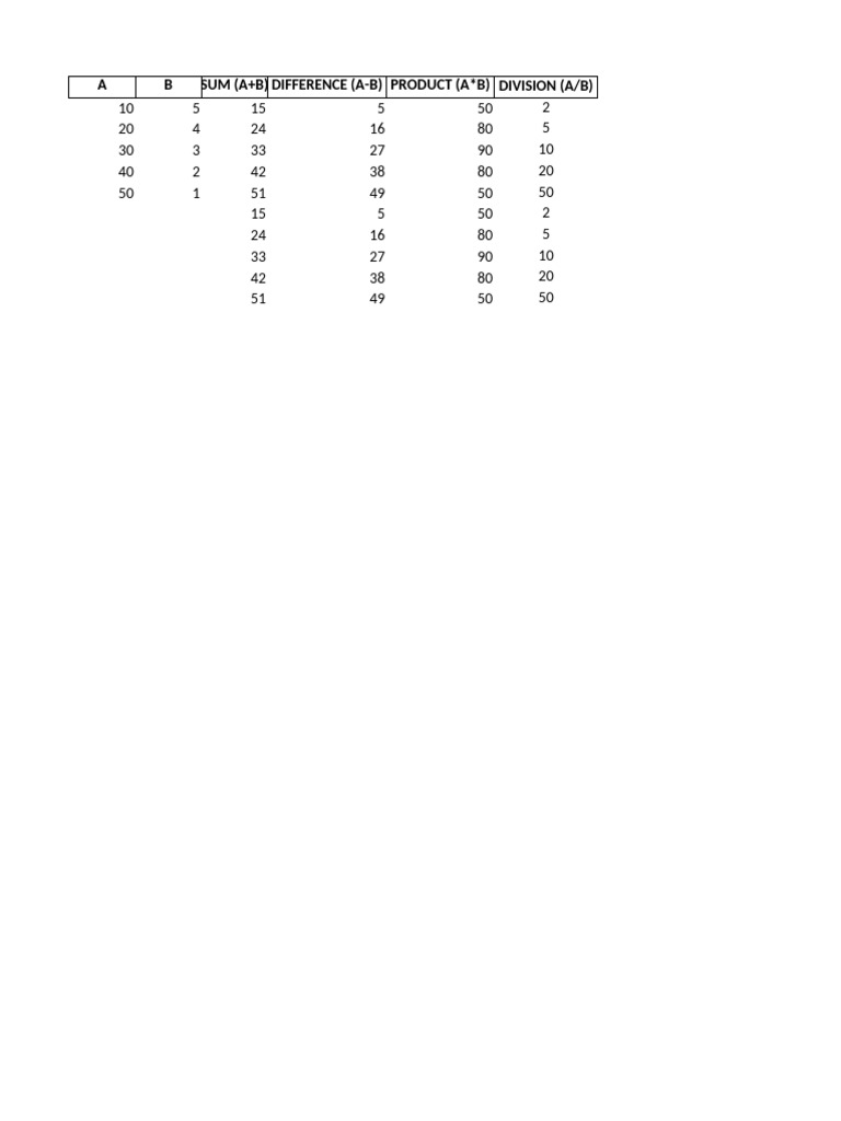 Excel Exercises | Spreadsheet | Mathematics