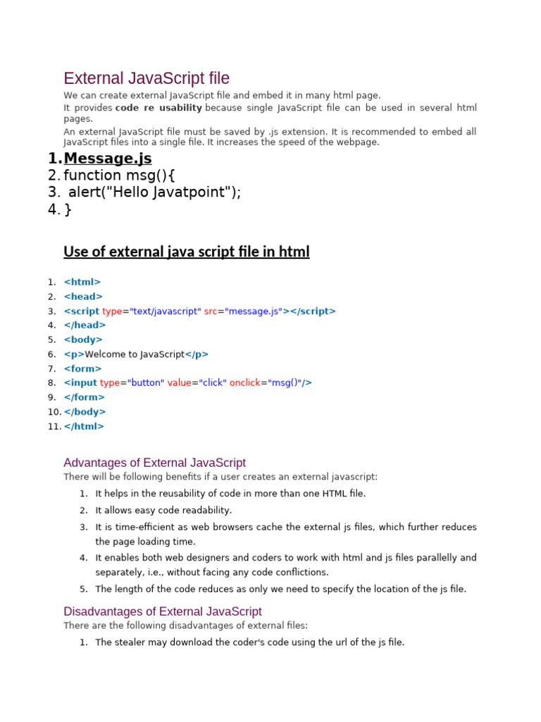 Introduction To JavaScript Notes | PDF | Java Script | Html