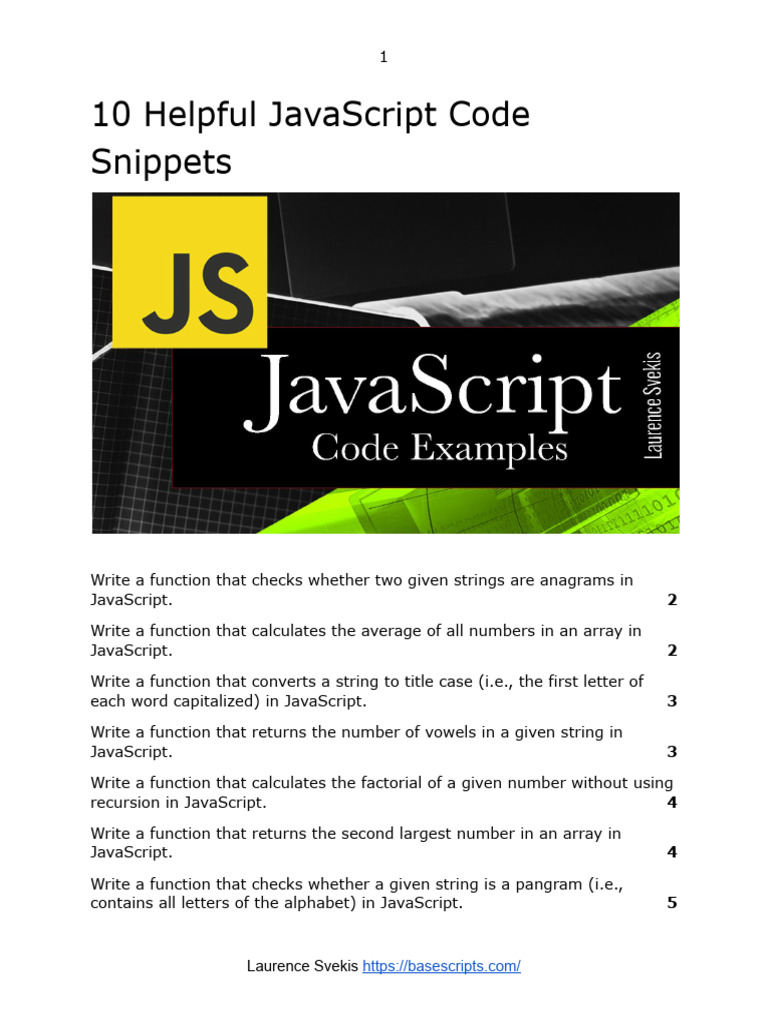 10 Best JavaScript Code Snippets Learn JavaScript Free PDF Guide ...