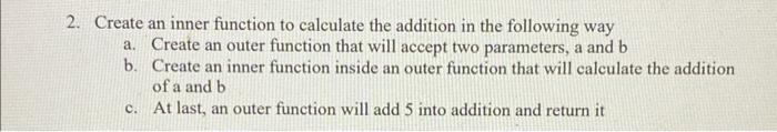 Solved 2. Create an inner function to calculate the addition | Chegg.com