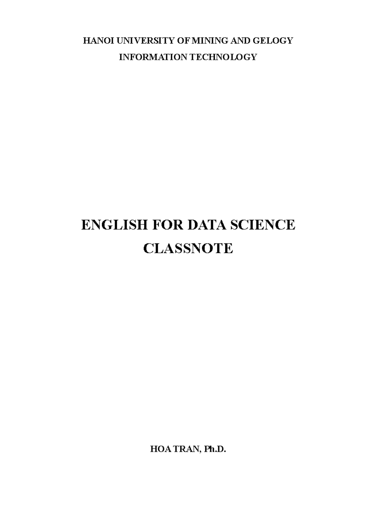 English for Data Science - Classnote 1 (HUMG IT) - Studocu