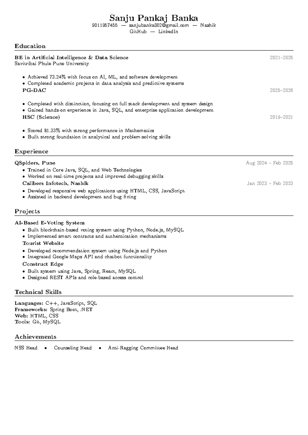 Sanju P. Banka - BE in AI & Data Science Overview (9011957455) - Studocu