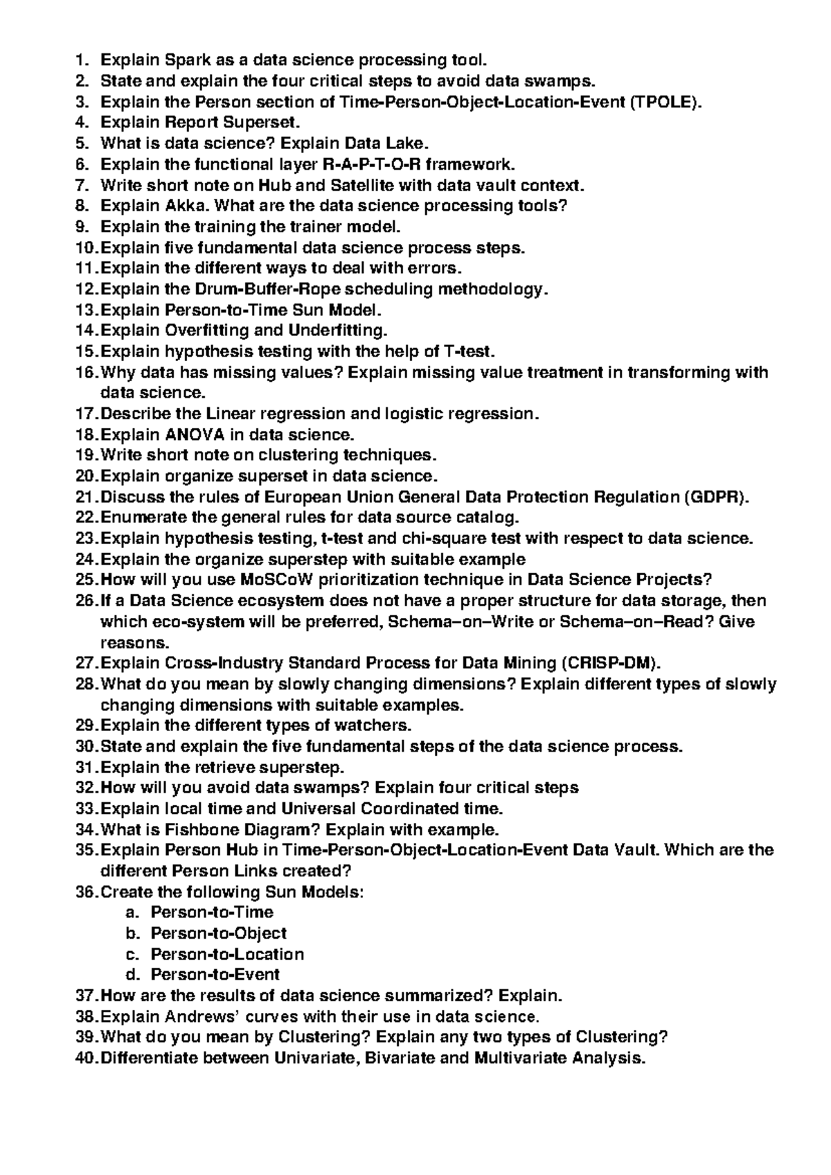 FDS 101: Comprehensive Data Science Questions and Concepts - Studocu