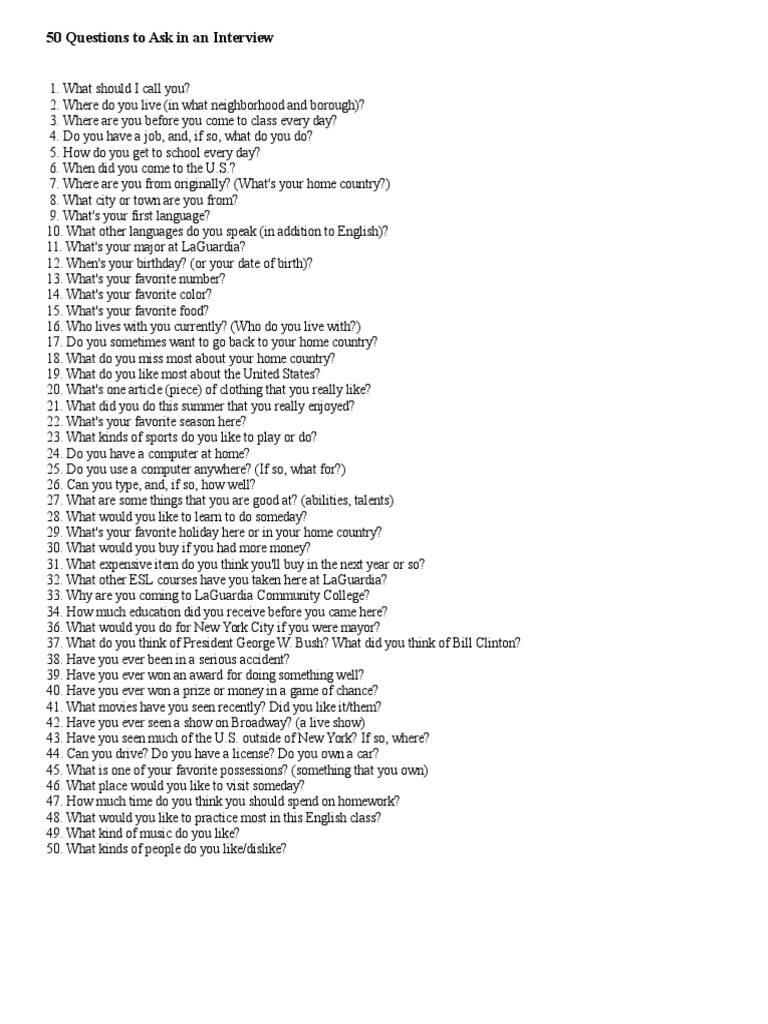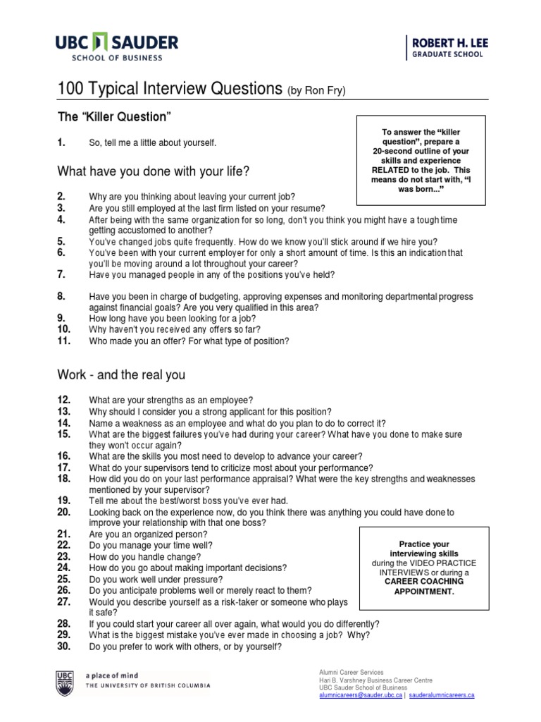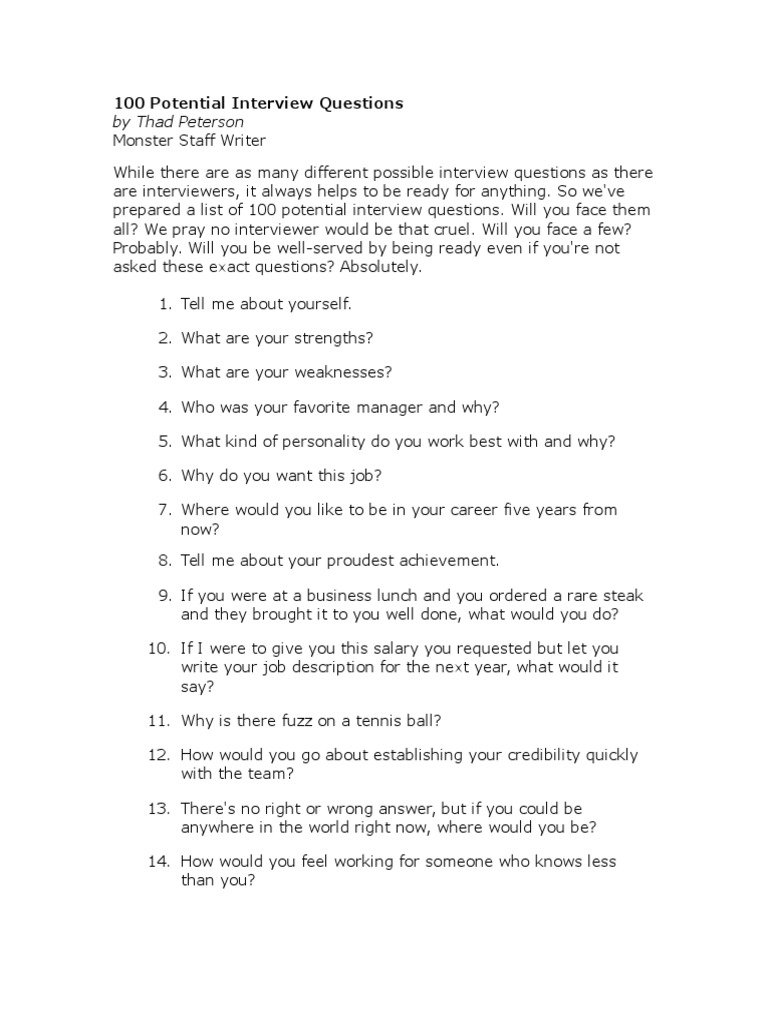 100 Typical Interview Questions: The "Killer Question" | PDF ...