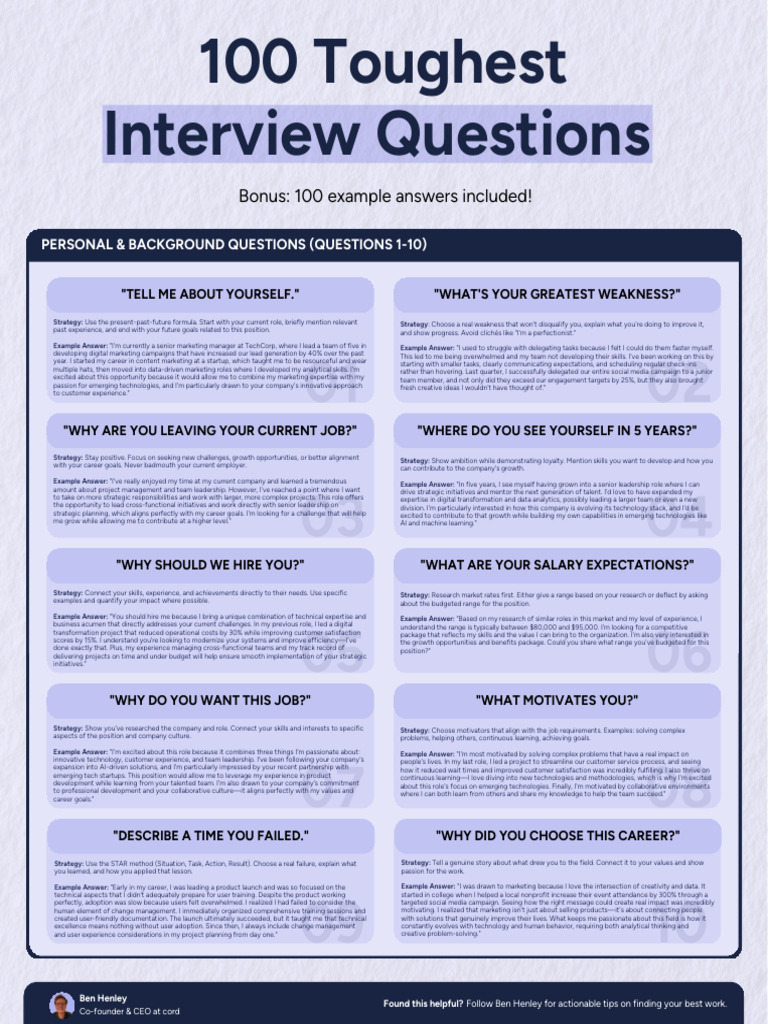 100 Job Interview Guide Questions and Answers | Expert Tips and ...