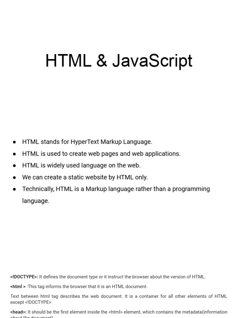 Based on this image's title: “HTML-Java Script Basics | PDF | Html Element | Html”