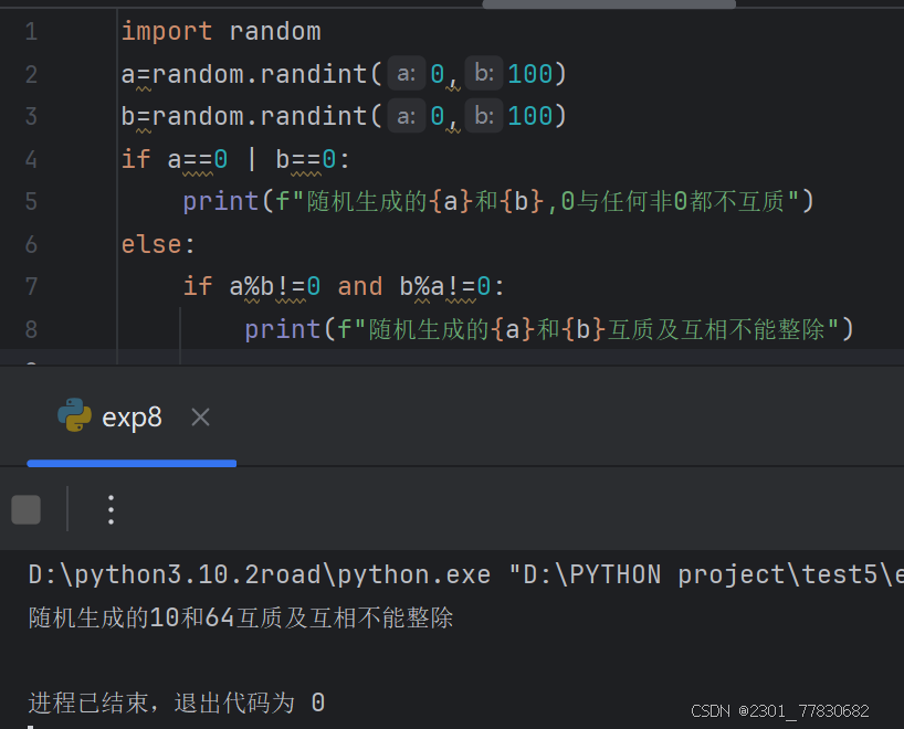使用random函数库中的函数产生两个100以内的随机整数,并判断它们是否互质。(提示:所谓互质就是指两个数互相不能整除;使用random ...